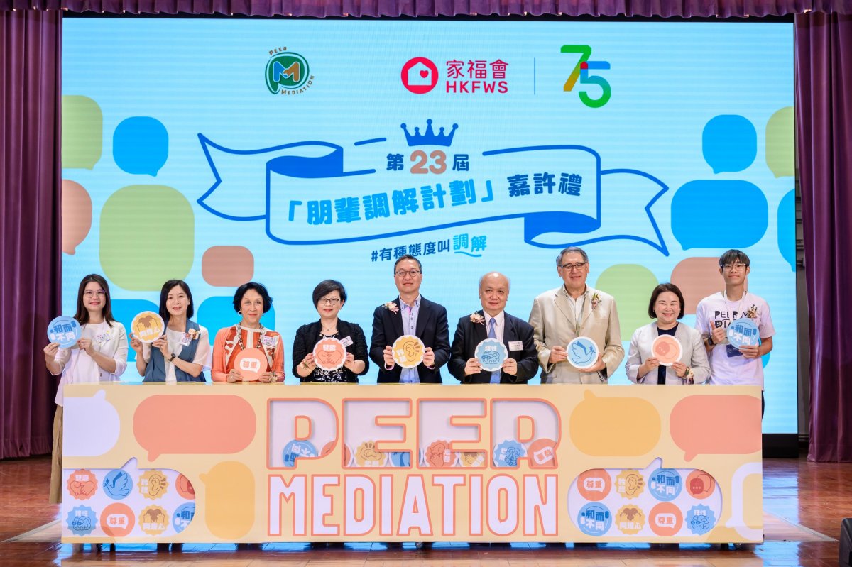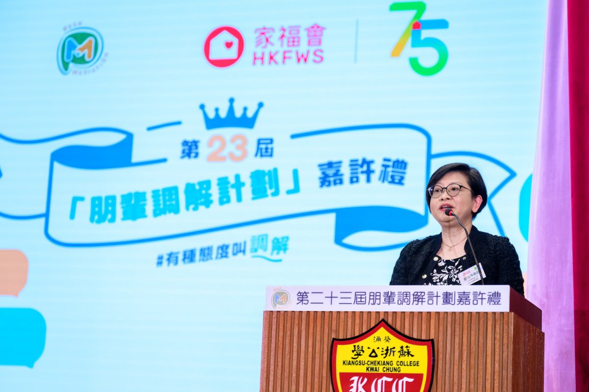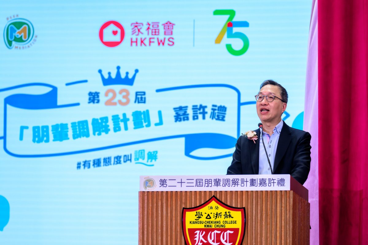 香港家庭福利會(家福會)於2024年7月6日在葵涌蘇浙公學,舉行第23屆「朋輩調解計劃」嘉許禮。當日很榮幸邀請到律政司司長林定國先生, SBS, SC, JP擔任主禮嘉賓。在嘉許禮中,除了嘉許積極推動和諧校園文化的朋輩調解員和參與學校外,席間來自20間中學的朋輩調解員,亦分享了推動朋輩調解的經驗和心得。