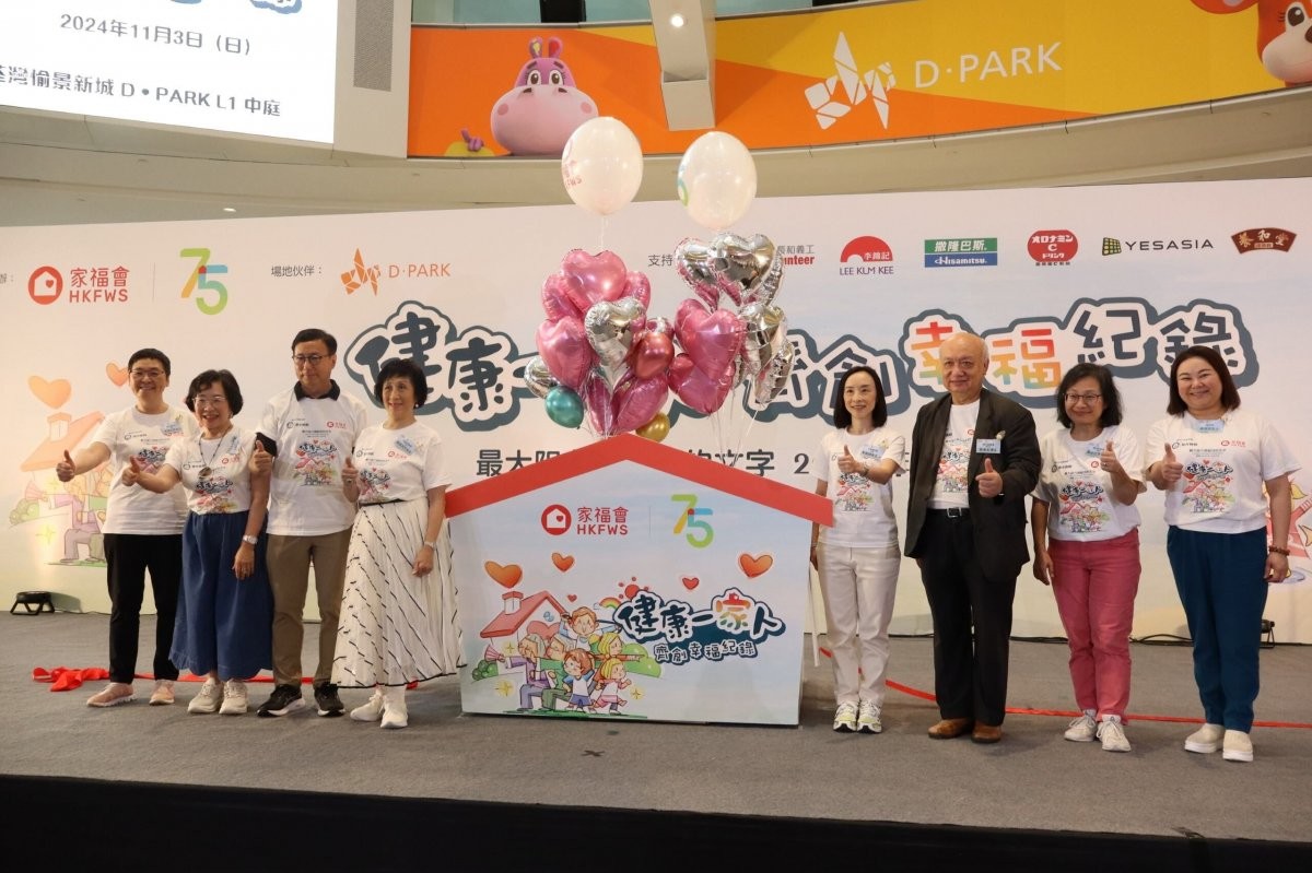 健康一家人 - 齊創幸福紀錄 - 活動邀請到社會福利署署長李佩詩女士, JP(時任)及立法會議員狄志遠博士, SBS, JP 擔任主禮嘉賓,一眾家庭以超過 1,000 條阻力帶拼砌出「家」字,成功以「最大阻力帶組成的文字」獲得健力士世界紀錄™ 榮譽,藉此向社會推廣關注「家庭健康」。