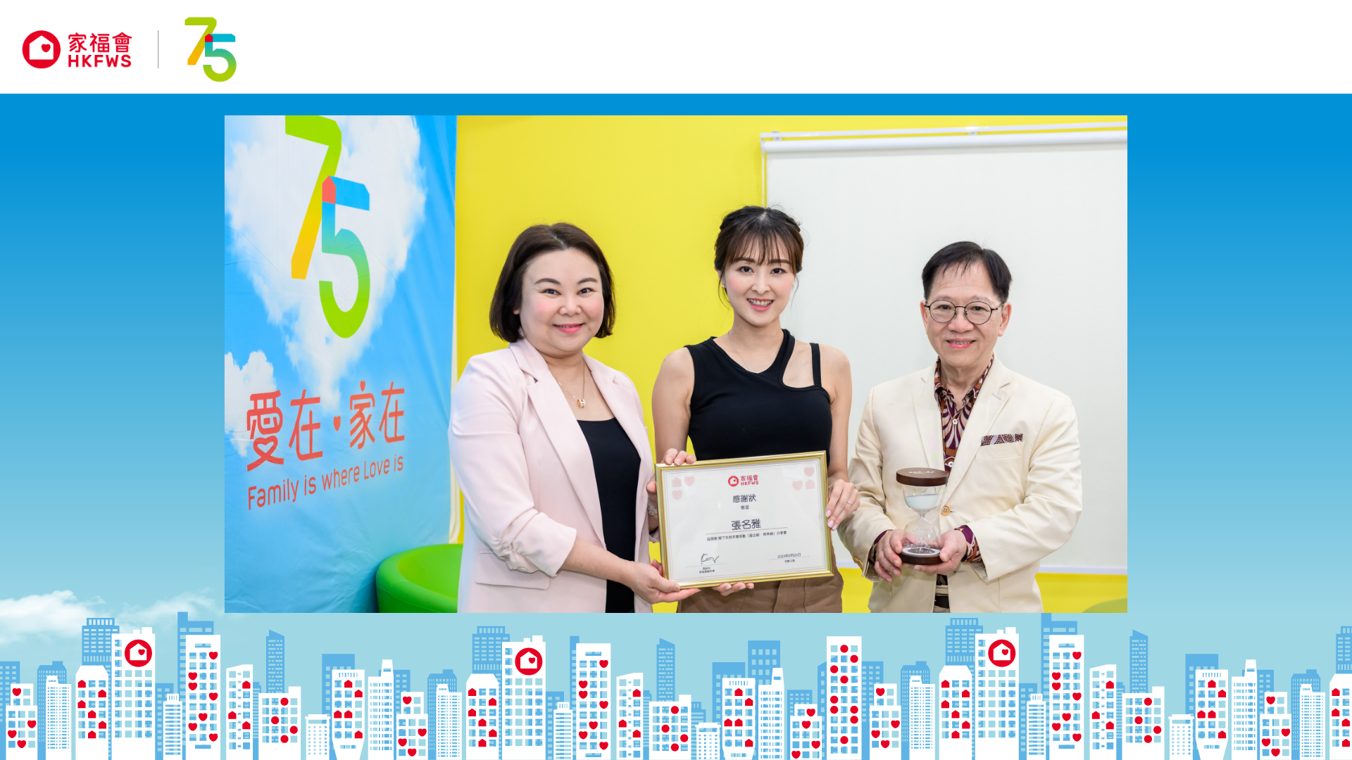 The latest "Family First” Sharing Session themed "Gen-Y, Happy Marriage”, was successfully held on 20 June at our centre Renowned journalist Lo Sai Cheong continued to serve as our guest host, while famous artist Chris Lai Lok Yi and Carat Cheung Ming Nga were invited as guests. Together they shared insights from the perspective of married individuals as a Gen-Y, including their moments of married life, communication tips, and the secrets to maintaining a strong bond, with the participation of Yupo Yu, Senior Social Worker from HKFWS, providing professional advice.