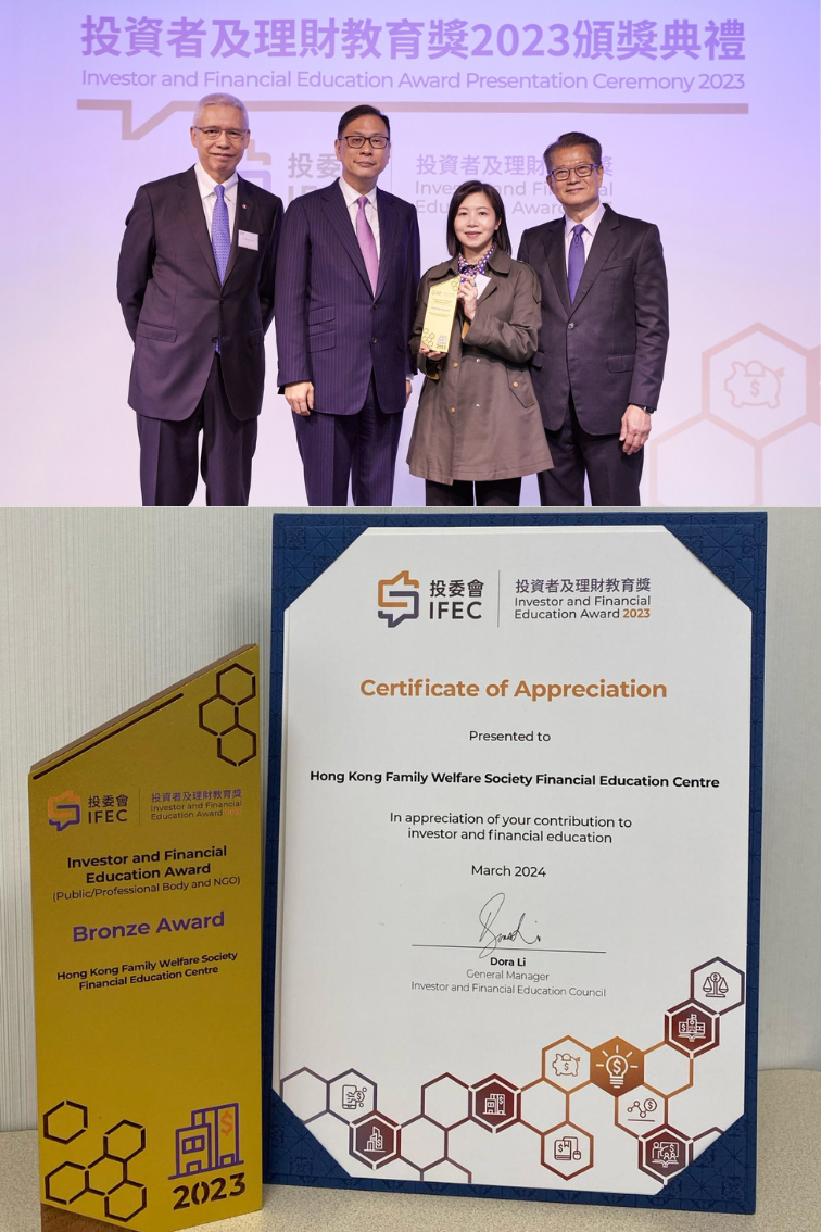 Financial Education Centre “Empowering Your Life’s Second Half Financial Education Project” received the “Outstanding FinFit Project Award” in the “HSBC HK Community Partnership Programme 2023” organised by The Hongkong Bank Foundation