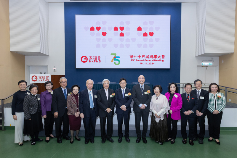家福會第75屆周年大會於11月19日圓滿舉行。會上通過2023/24的工作報告、財政報告及核數師報告,也選出2024/25年的會長、義務司庫、執行委員會委員。今年周年大會邀請了香港特別行政區勞工及福利局局長孫玉菡先生, JP作主禮嘉賓,孫局長在演說中肯定家福會的工作,並鼓勵我們繼續致力服務香港家庭。本會亦於周年大會上頒發了「長期服務獎」予兩位執行委員會委員,包括義務司庫鄭樹成先生 (45年長期服務奬)、鄧守亷醫生 (15年長期服務奬),及88位服務了10至35年的同事,感謝他們在不同的範疇作出貢獻。