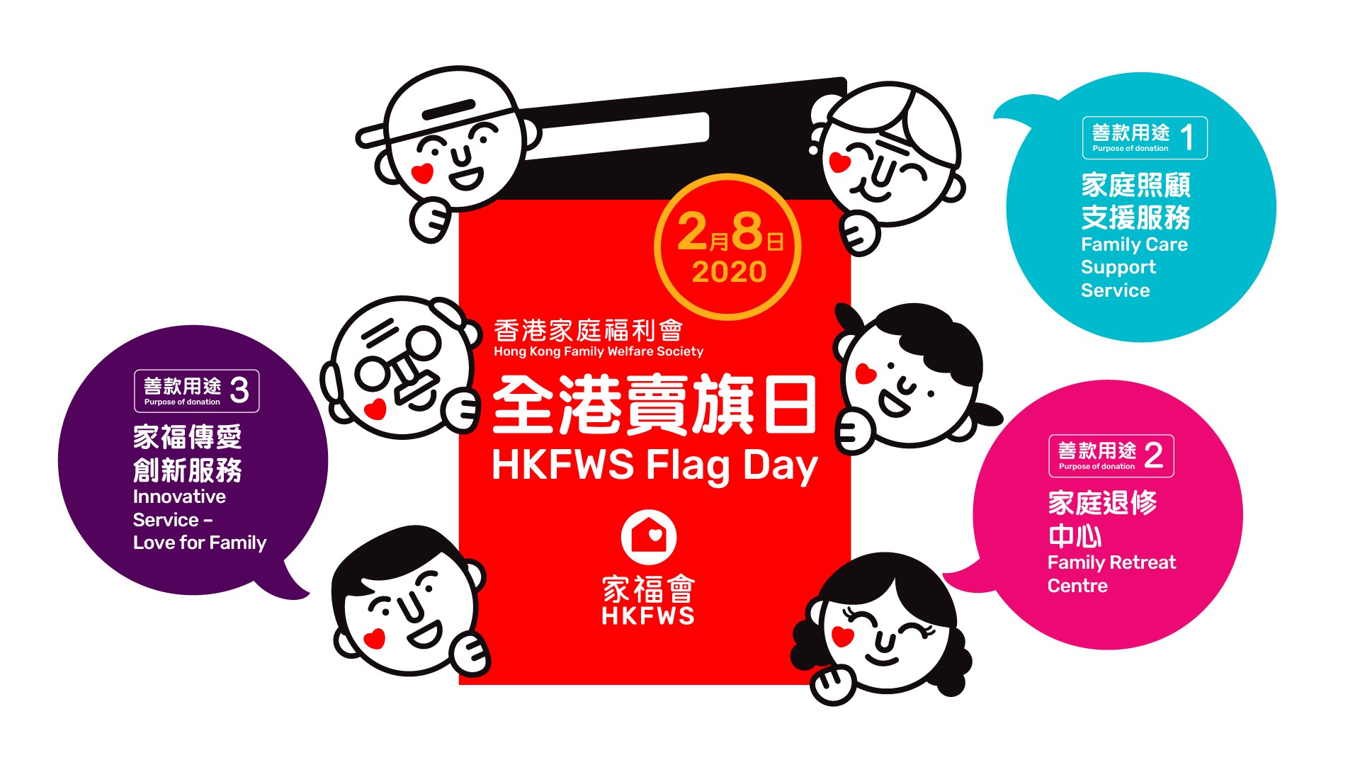 家福會全港賣旗日將於2020年2月8日(星期六)舉行, 是次籌款目標為港幣130萬元。我們現需招募超過8,000名賣旗義工,同時歡迎各位認購金旗捐獻支持。是次賣旗善款將會用作發展家福傳愛創新服務、家庭照顧支援服務,及家庭退修中心的工作,以填補服務的空隙,惠及有需要家庭。我們急需你的參與或捐款支持。