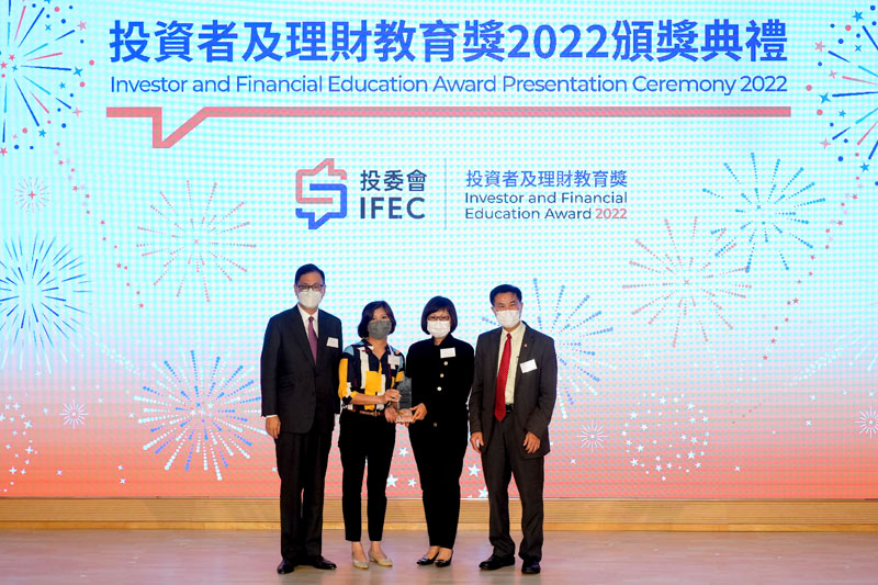 理財教育中心屢獲殊榮 理財教育中心藉著「e$mart理財童學會」再度獲得由「投資者及理財教育委員會(投委會)」頒發「投資者及理財教育獎2022 - 金獎」,計劃有一系列針對學生使用「電子交易」為題的理財教育活動,裝備學生迎接「電子交易」的消費模式,並推動社會人士對此新趨勢的理解。另外亦連續五年獲得香港財務策劃師學會頒發獎項,今屆「理財教育及ESG領袖大獎2022」中獲頒「企業理財教育及ESG領袖 (金獎) 」,再次肯定了本中心在提升公眾理財素質及金融知識水平努力的貢獻和成果。