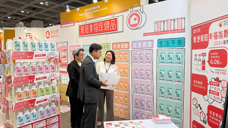 家福會於5月20至21日 期間參展「S+高峰會暨博覽2025」,藉著被打造成「家福保健專櫃」的展位,與各界人士分享本會按「 香港家庭幸福指數」調查發現而 向公眾提供的家庭幸福保健建議。 家福會高級經理張詠珊同場獲邀參與主題及專題演講,分享「物管與鄰舍支援家庭需要狀況」的研究。立即透過「香港家庭幸福指數」問卷,了解你的家庭幸福狀況!