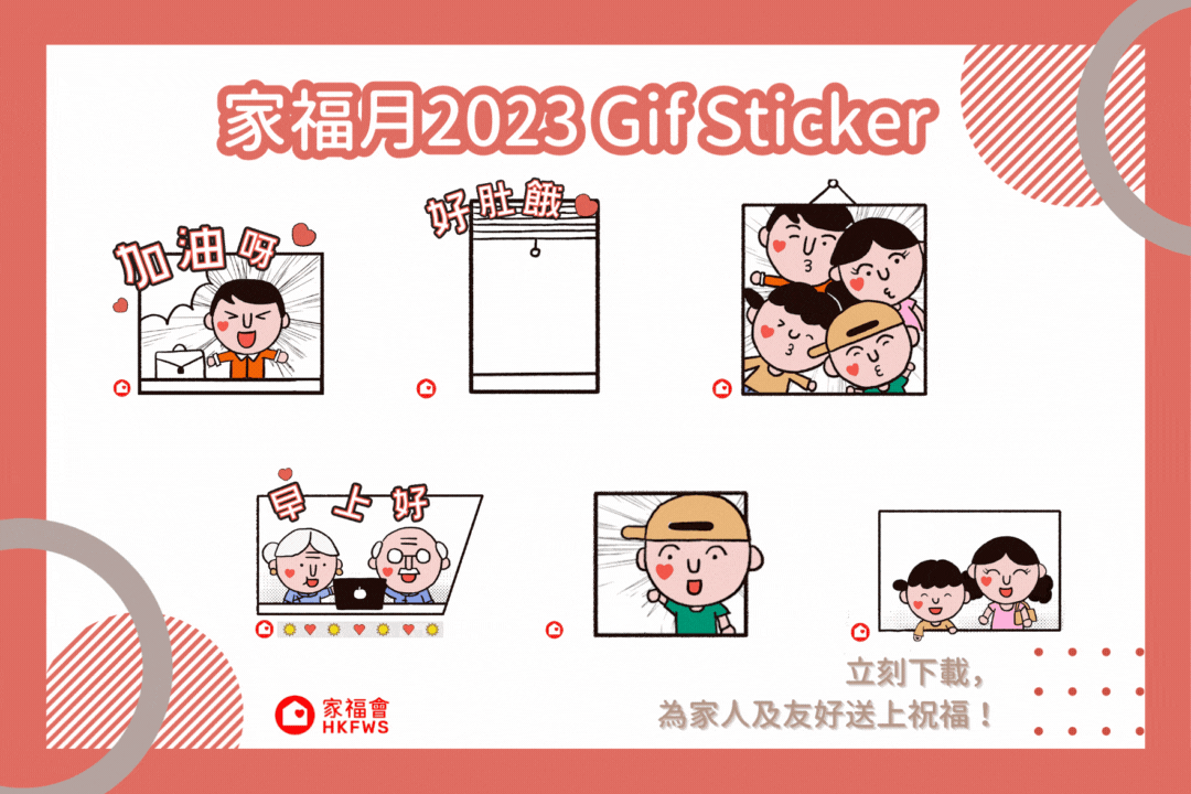 家福月系列動態WhatsApp / Signal sticker 為響應家福月,讓大家傳遞「最緊要一家人」的正能量,本會精心製作了 WhatsApp / Signal動態sticker ,歡迎大家下載,向家人及友好送上問候。