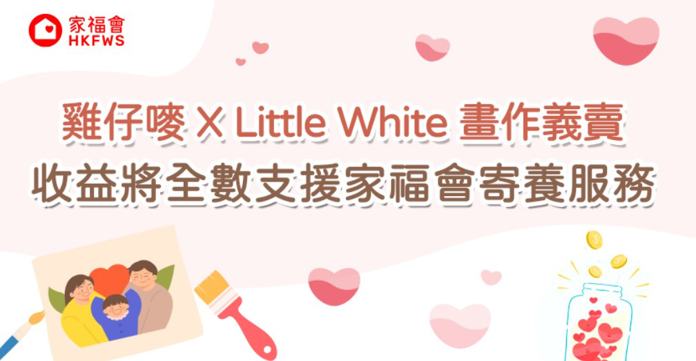 雞仔嘜 X Little White畫作義賣 收益將全數支援家福會寄養服務 家福會於1984年開展寄養服務,安排因家庭問題而缺乏父母或家人照顧的兒童,暫時入住寄養家庭,讓他們得享家庭生活及適當的照顧,待其家庭情況改善後回家團聚。家福會獲雞仔嘜支持,成為其70周年活動畫作義賣的受惠機構,義賣收益將全數撥捐家福會,支援寄養服務,幫助更多有需要的寄養兒童。