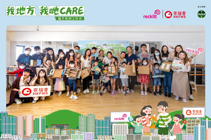 利潔時 | 家福會 - 「我地方 我哋CARE」親子收納工作坊 為推廣家庭幸福及宣揚家庭價值,家福會聯同利潔時香港及旗下品牌滴露香港於7月舉辦了三場親子收納工作坊,宣揚「我地方 我哋CARE」的精神。工作坊內容包括收納師講座、兒童遊樂區和親子DIY工作坊。透過是次活動,家長學習到收納技巧,更有效地與子女一起整理和清潔家居;藉著製作環保「玩具櫃」,讓親子共同體驗升級再造的樂趣,同時享受快樂的親子時光。此外,是次活動製作了2,000份「我地方 我哋CARE」親子互動包,當中包括由家福會「最緊要一家人」企劃社工提供的專業建議及獎勵計劃,並於社區及服務單位派發,鼓勵家長與子女訂立目標,引導他們完成家務小挑戰,建立衞生小習慣,一同守護「我地方」,從而提升家庭幸福感。