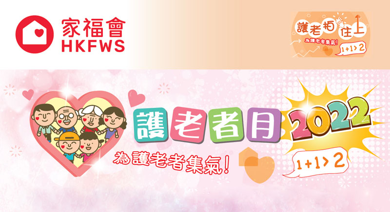 為了引起社會對護老者福祉的關注,今年家福會的長者服務推行「護老拍住上」一系列護老者支援服務,以「為護老者集氣!1+1>2」為主題,呼籲每一個支持護老者的我們,攜手建立一個護老者友善的社會,發揮一加一大於二的影響力。家福會亦將於今個10月舉行「護老者月」,希望大眾透過各種活動及宣傳一起為護老者集氣,發揮家庭力量及動員社區參與,支援護老者,實踐「最緊要一家人」的精神,而護老者透過參與月內活動,短暫放低照顧壓力,享受Me Time。