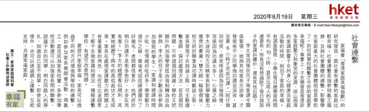 本會於5月15日(國際家庭日)發佈全港首個「香港家庭幸福指數」量度工具,喚起公眾關注家庭幸福。按此瀏覽新聞稿 按此瀏覽發佈會精華片段 按此重溫完整發佈會