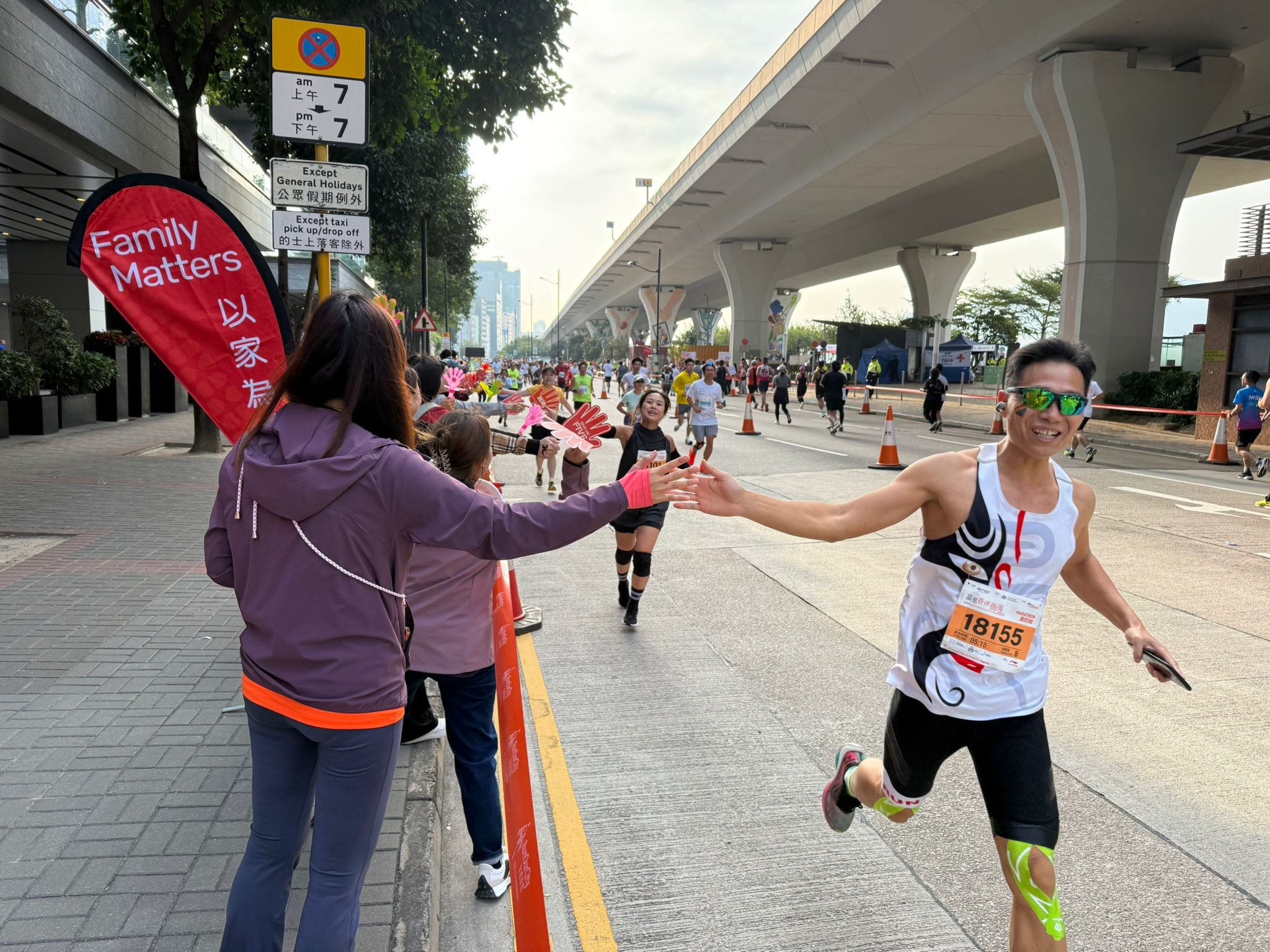 作為活動的受惠機構及合作伙伴之一,本會除了參與街馬賽事之外,更組織同事於活動中設立補給站及打氣站,為眾多跑手充電和打氣,並希望藉此向大眾傳遞「健康是一家人的事」的訊息,一同推動「香港家庭幸福指數」六大範疇中的「家庭健康」。