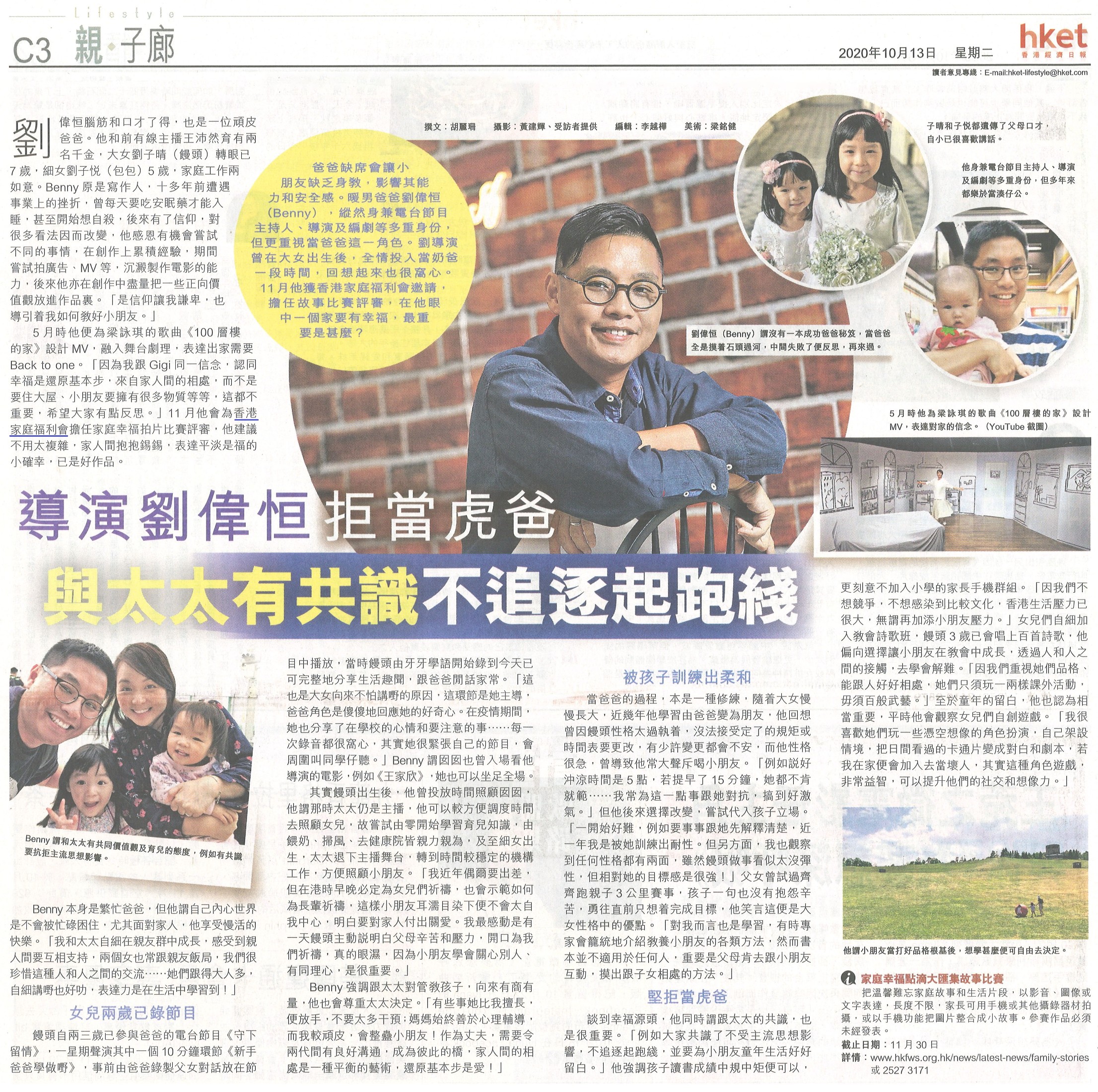 導演劉偉恒拒當虎爸 與太太有共識不追逐起跑線