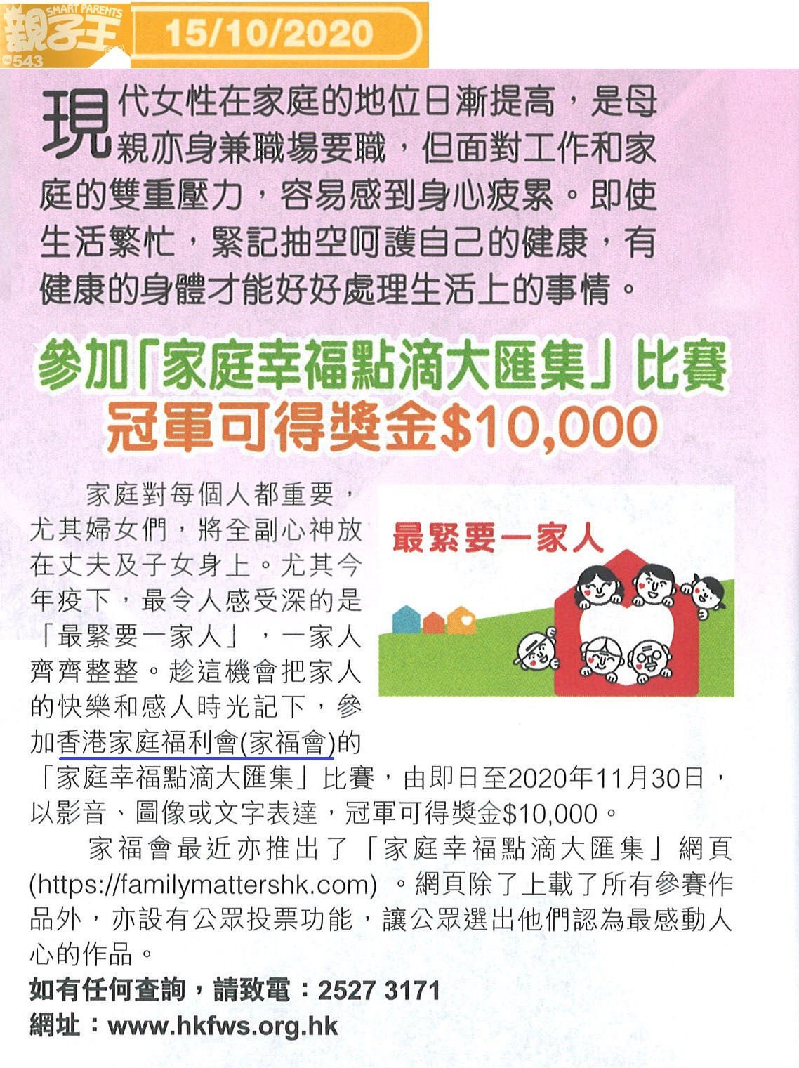 參加「家庭幸福點滴大匯集」比賽 冠軍可得獎金$10,000
