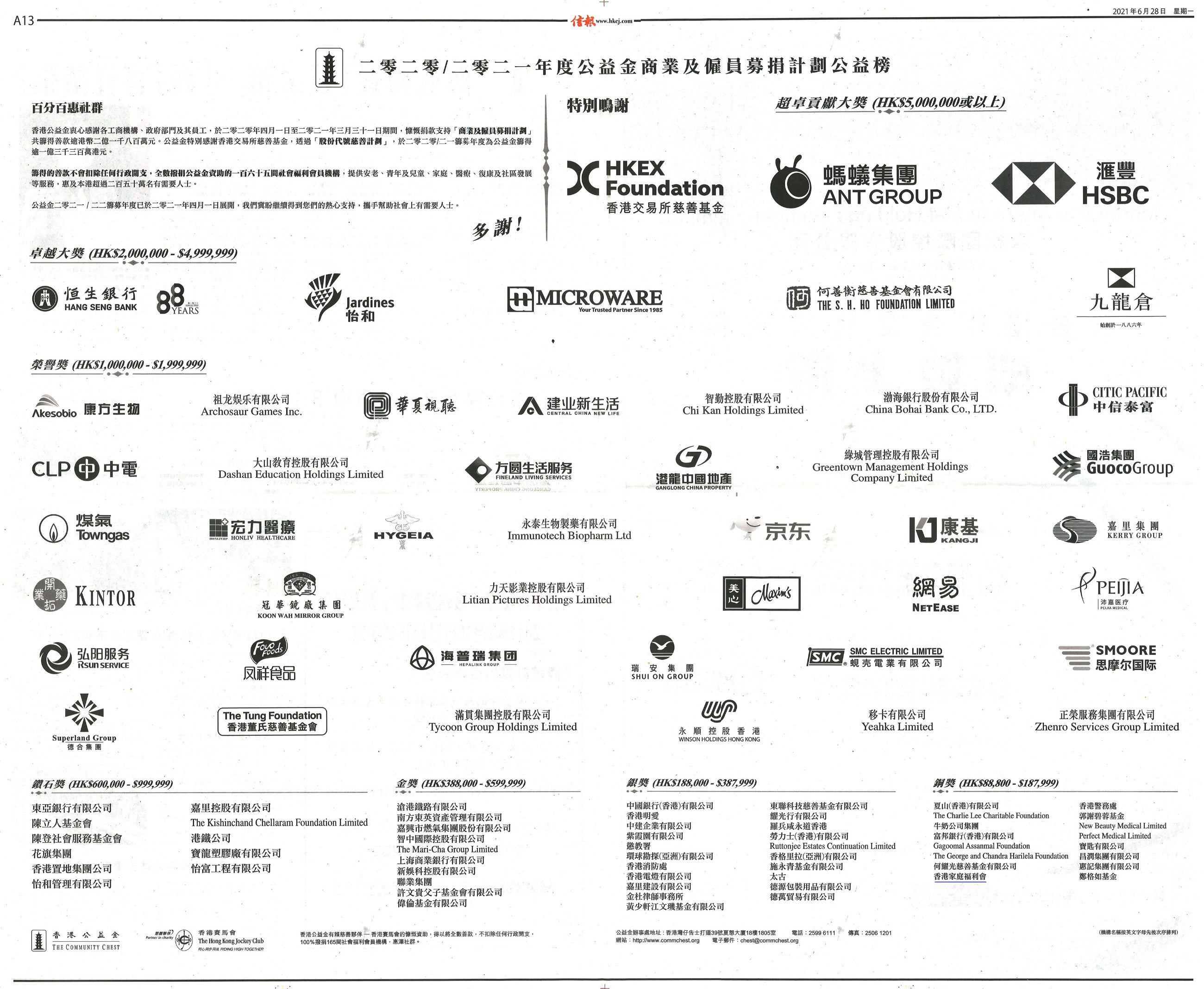二零二零 / 二零二一年度公益金商業及僱員募捐計劃公益榜