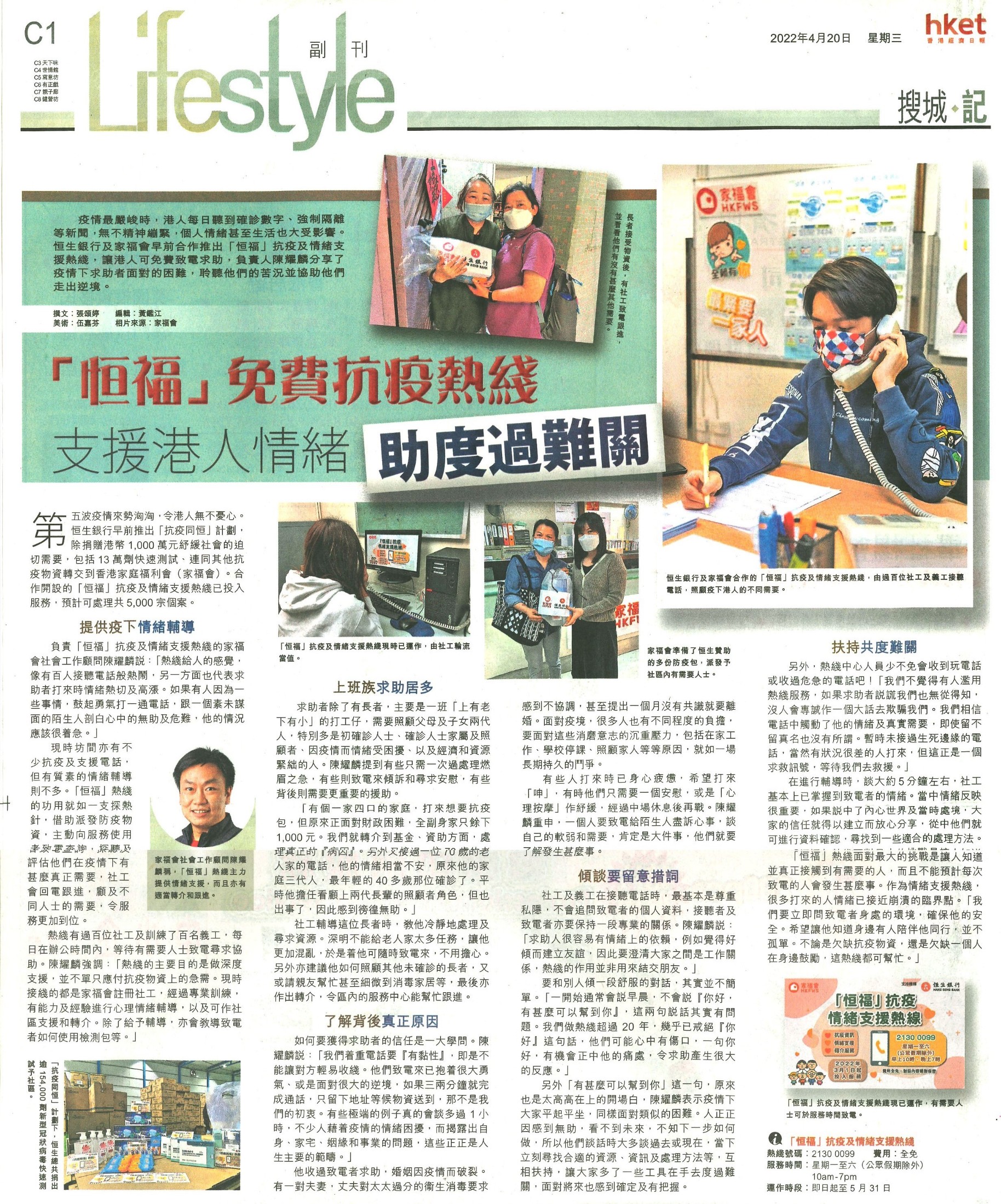 「恒福」 免費抗疫熱綫 支援港人情緒助度過難關