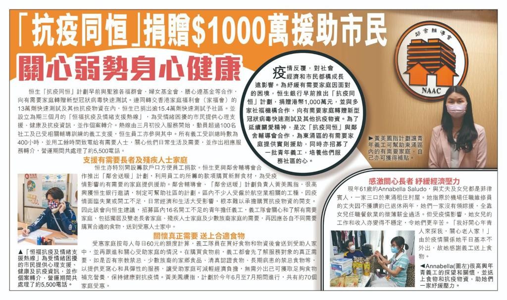 「抗疫同恒」捐贈$1,000萬援助市民 關心弱勢身心健康