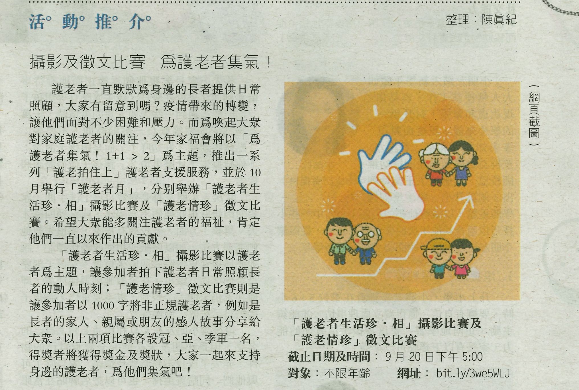 活動推介:攝影及徵文比賽 為護老者集氣!