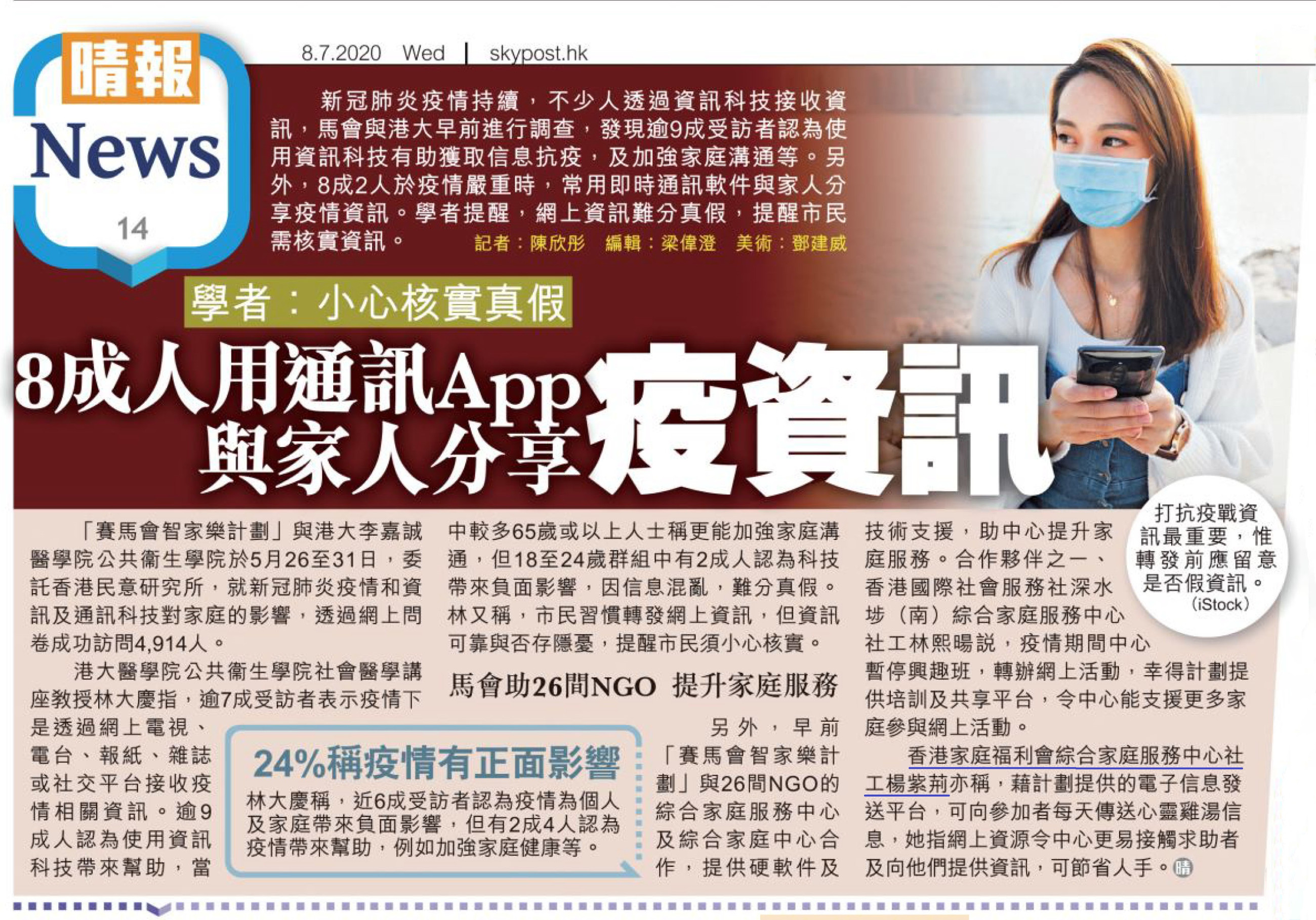 8成人用通訊App與家人分享疫資訊