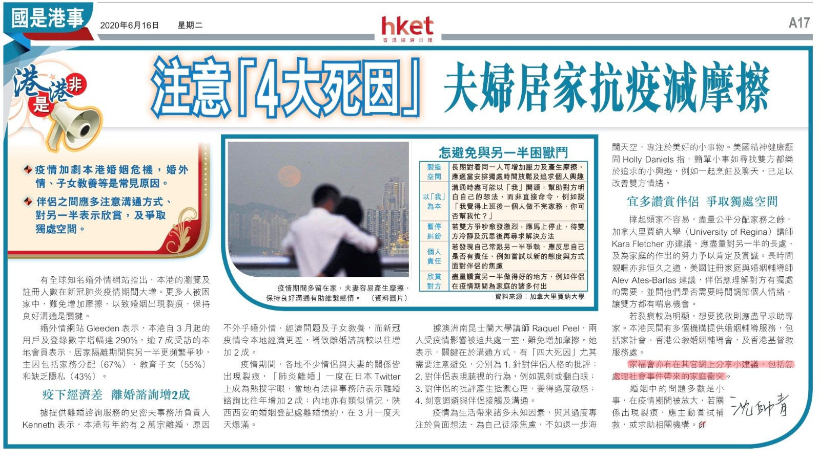 注意「4大死因」 夫婦居家抗疫減磨擦