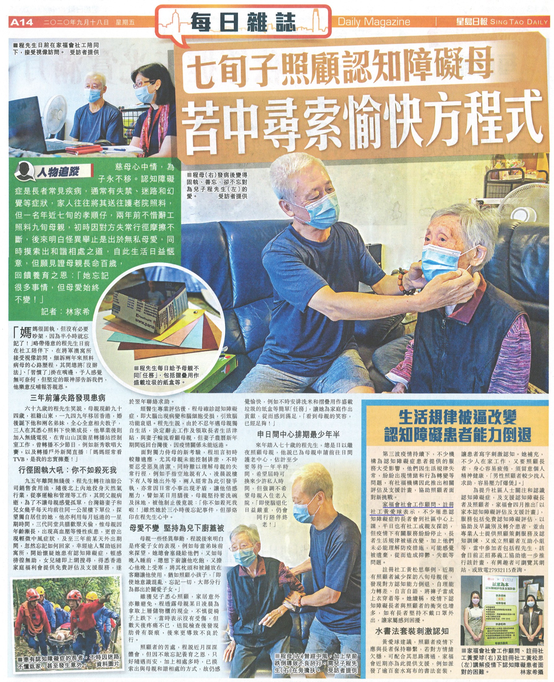 七旬子照顧認知障礙母 苦中尋索愉快方程式