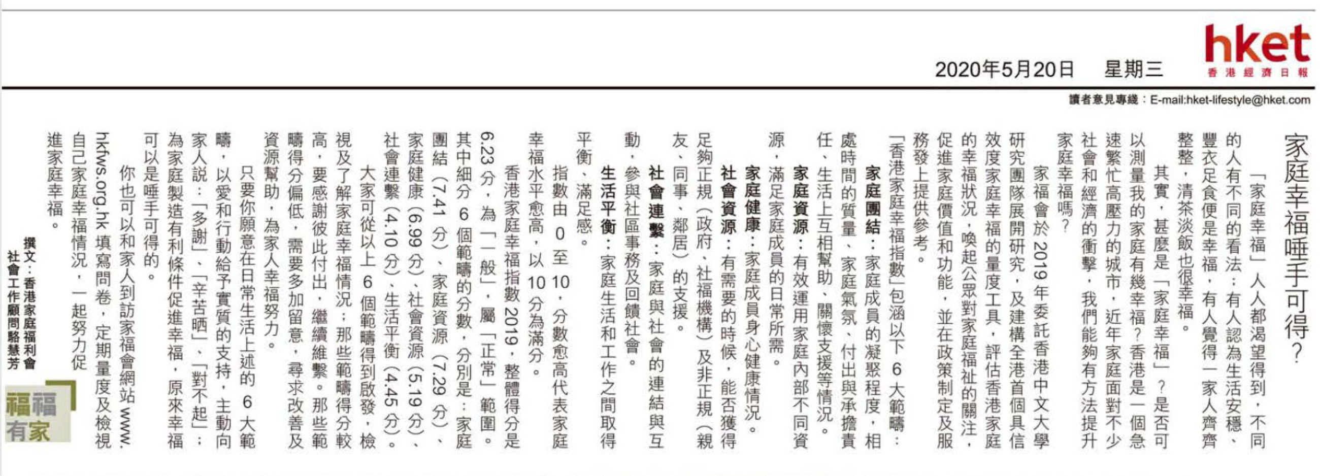 Hong Kong Family Wellbeing Index