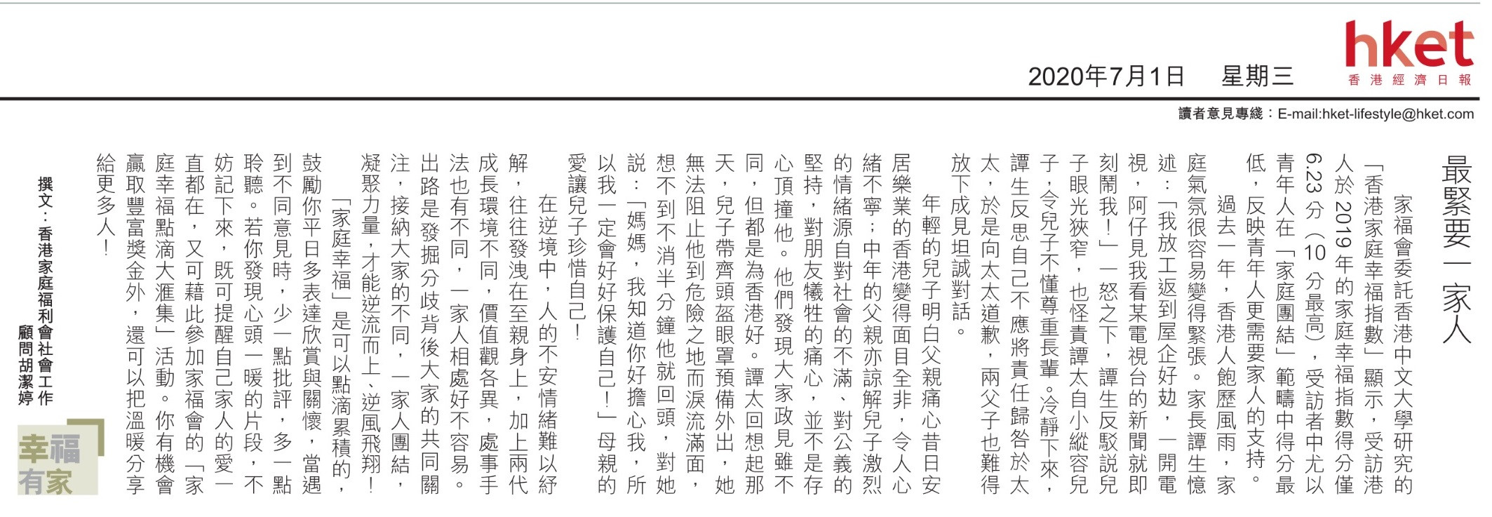 Hong Kong Family Wellbeing Index