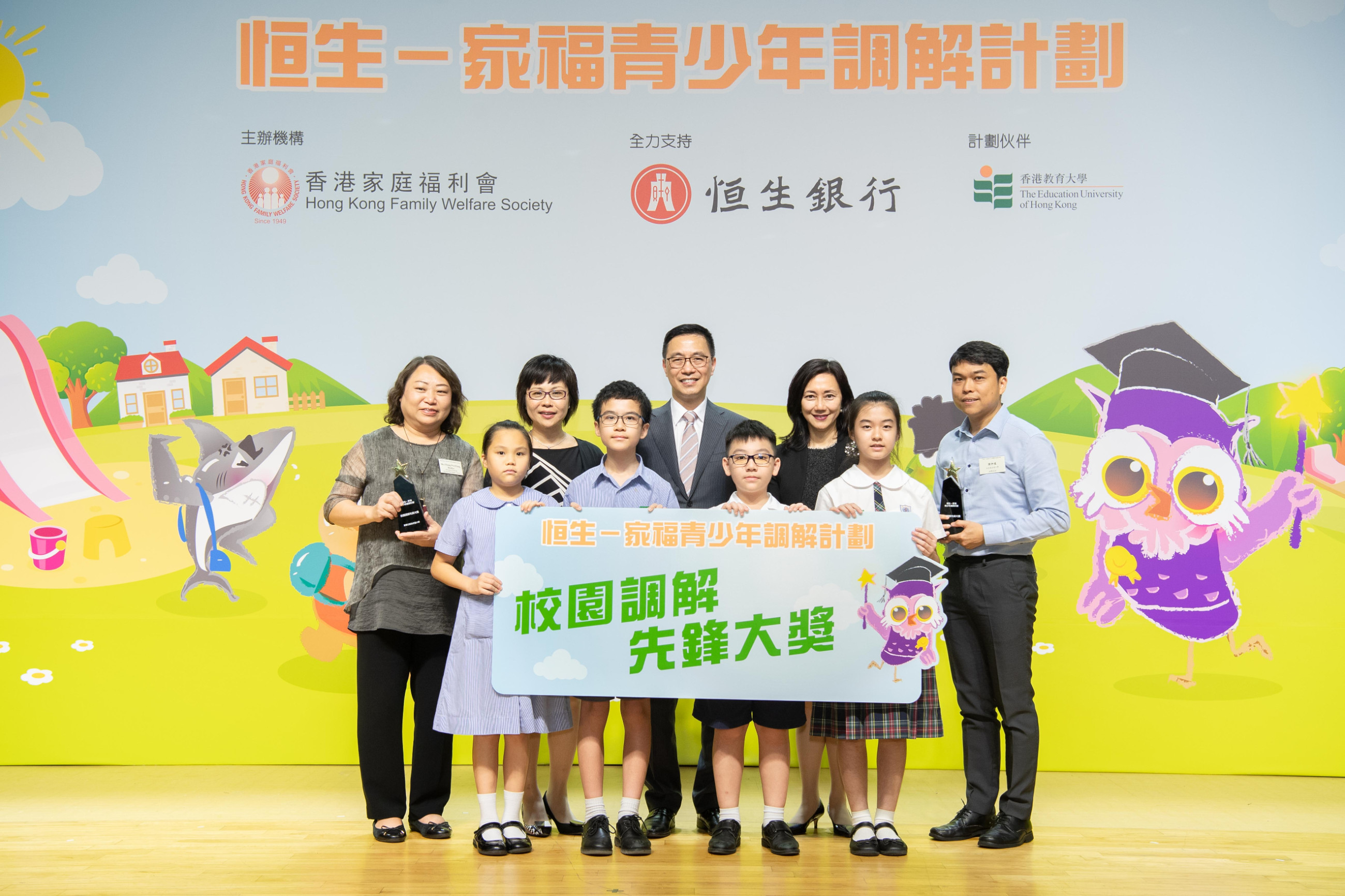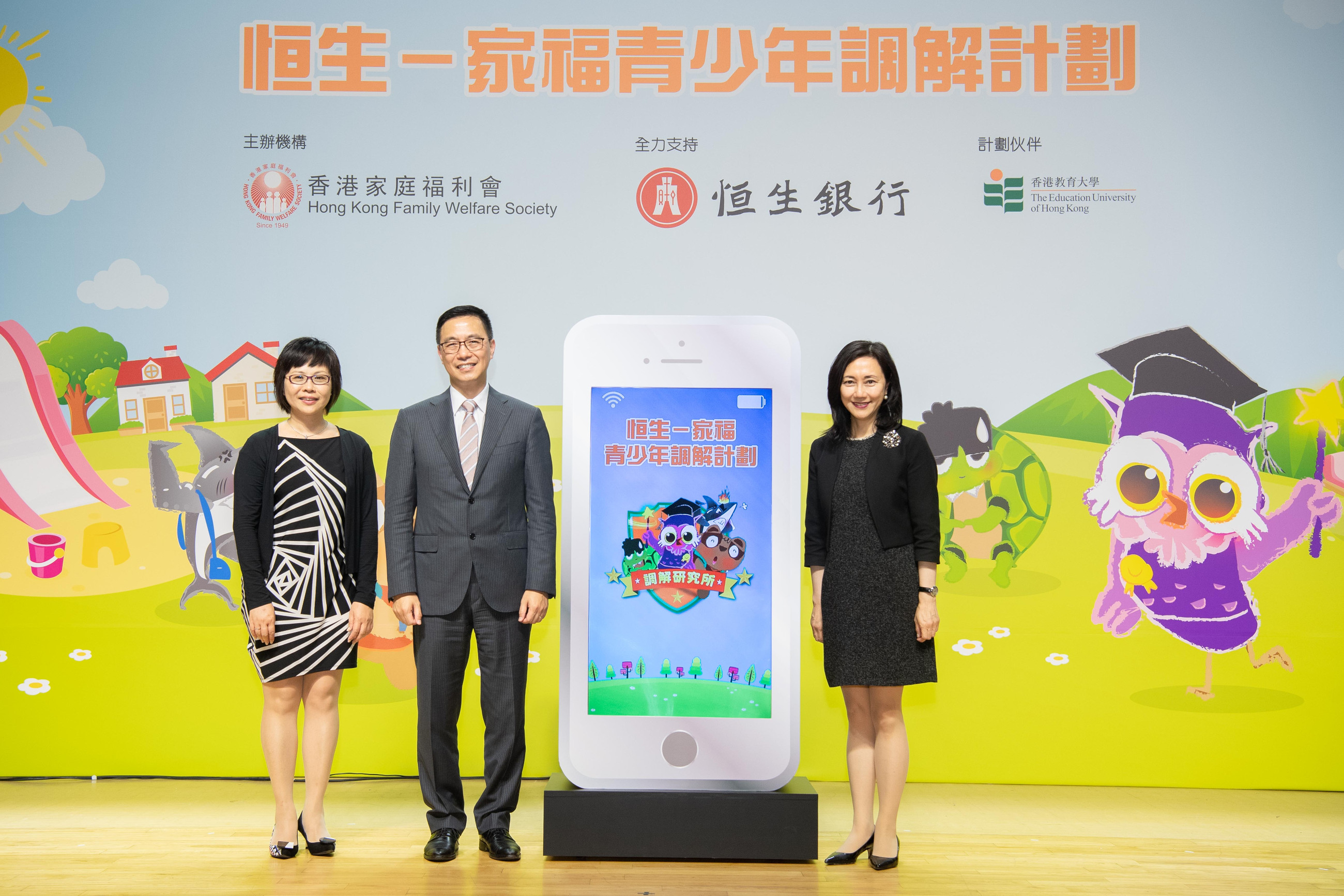 香港特別行政區政府教育局局長楊潤雄、恒生銀行執行董事兼零售銀行及財富管理業務主管關穎嫺,以及香港家庭福利會總幹事葉潤雲擔任典禮的主禮嘉賓,分別頒發「小學朋輩調解員」嘉許狀予逾400名高小學生,並為即將推出的流動應用程式「調解研究所」主持啟動儀式。