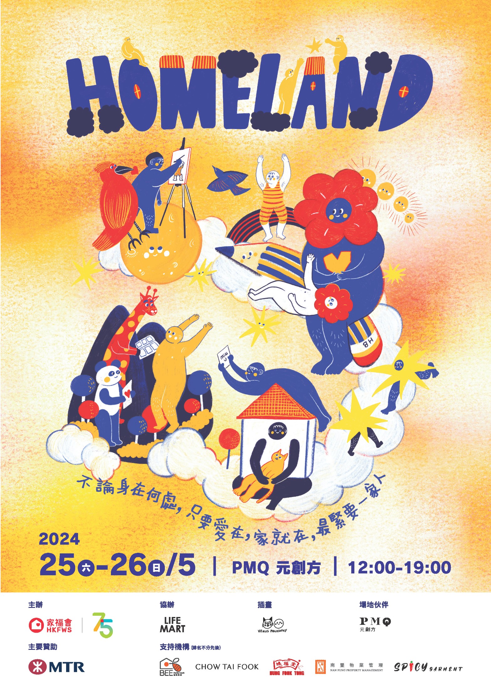香港家庭福利會於每年5月舉行「家福月 Family Month」, 希望藉此提升香港家庭對家庭幸福 (Family Wellbeing) 的重視。「Homeland」家庭市集作為家福月活動之一,透過舉行購物與遊玩元素並重的週末市集,讓公眾享受家庭時光 (Family Moment) 。