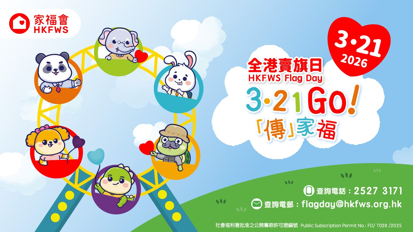 香港家庭福利會(家福會)將於2026年3月21日(星期六)舉行全港賣旗日,秉承本會「以家為本」的信念,特別以「3.21 GO! 『傳』家福」為主題,希望透過傳承和分享家庭幸福,強調家庭的價值,鼓勵大眾珍惜家庭關係。