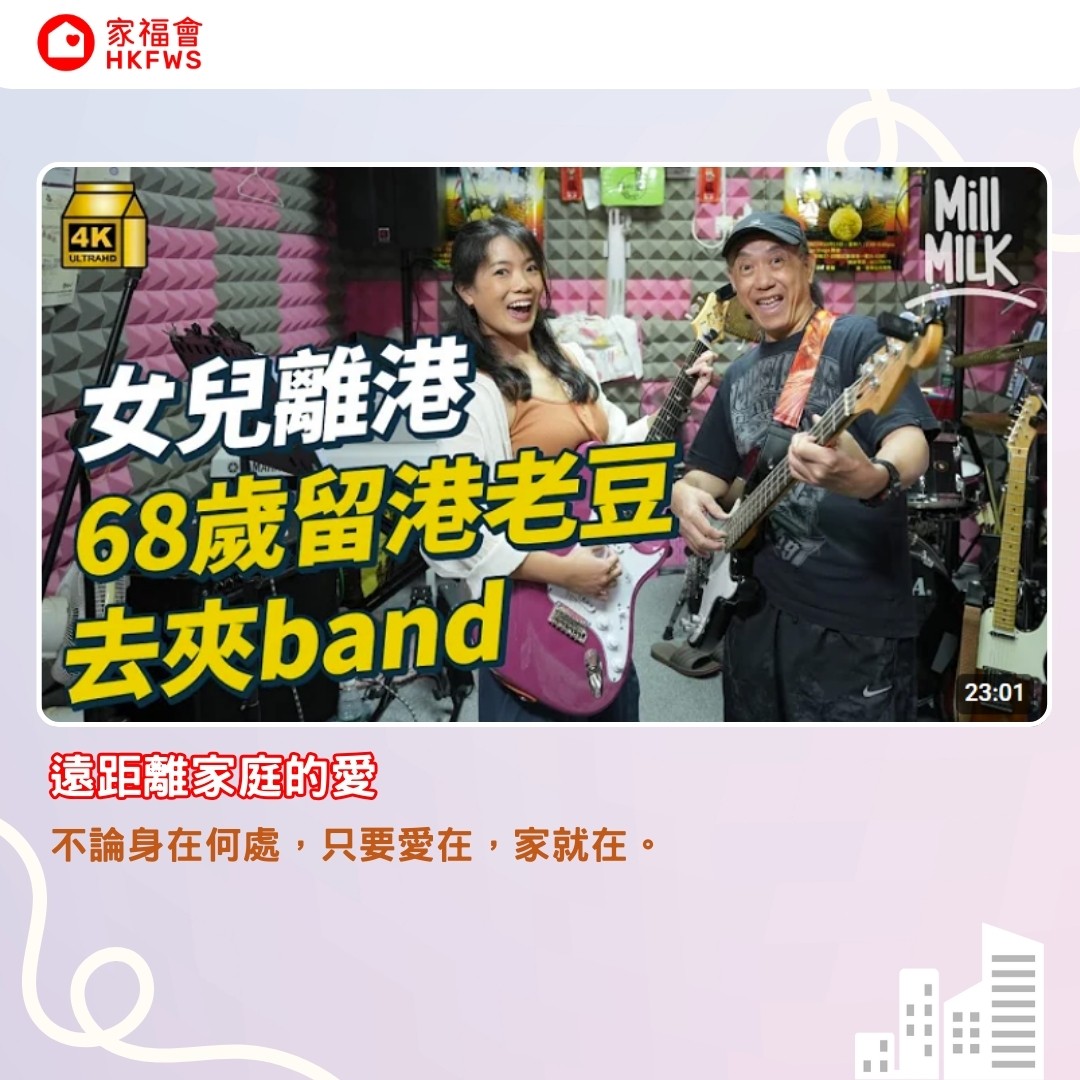 於家福會75周年,我們與網絡平台Mill MILK合作,帶出「愛在·家在」嘅信息。像影片中Gary 和女兒Jancy,女兒到加拿大讀書,Gary雖然不捨,但會去理解,並讓她做喜歡的事。Gary在香港則重拾夾Band夢,一家人成就彼此。Gary和女兒分隔兩地,但是話題多了,關係好了,展現了只要愛在家就在。