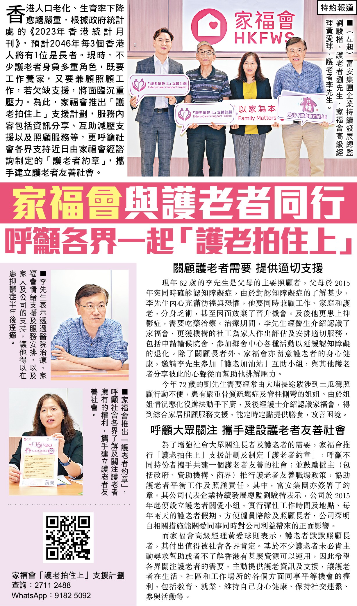 家福會與護老者同行 呼籲各界一起「護老拍住上」