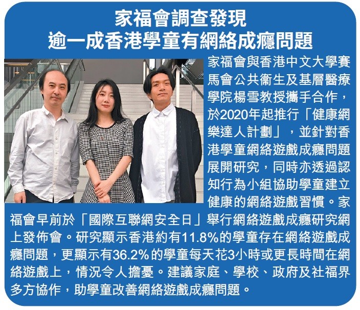 家福會調查發現 逾一成香港學童有網絡成癮問題