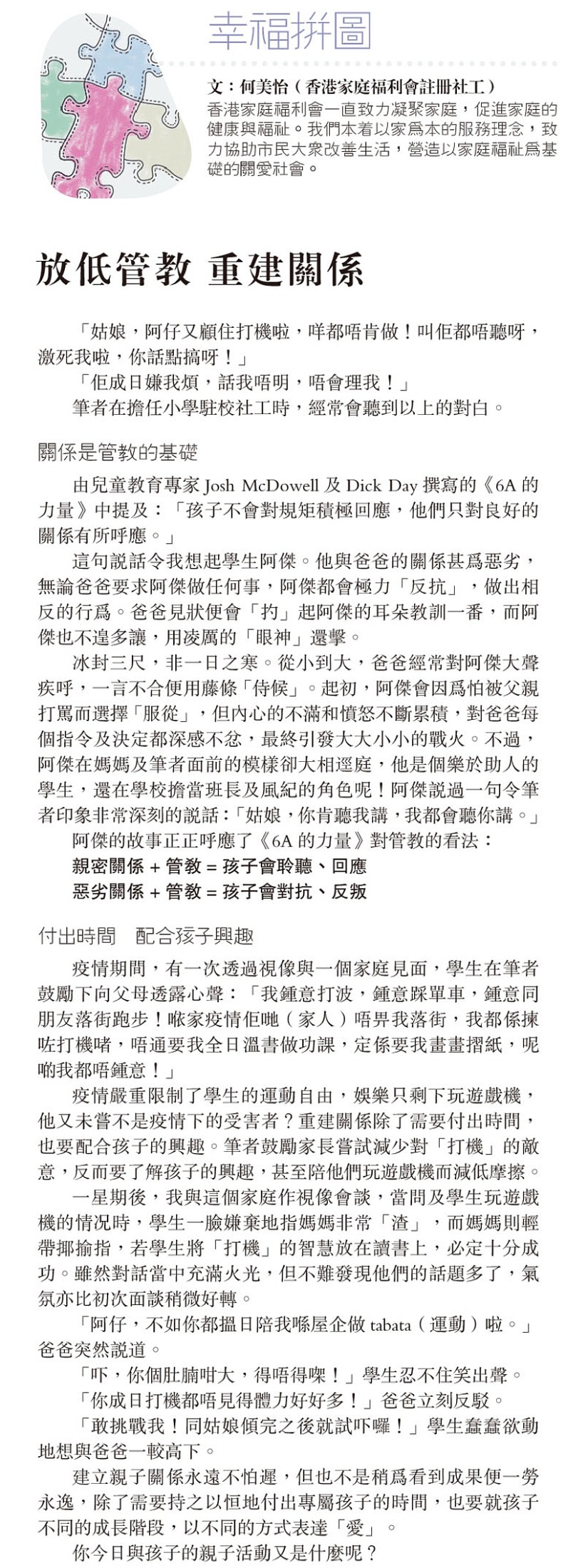 幸福拼圖:放低管教 重建關係