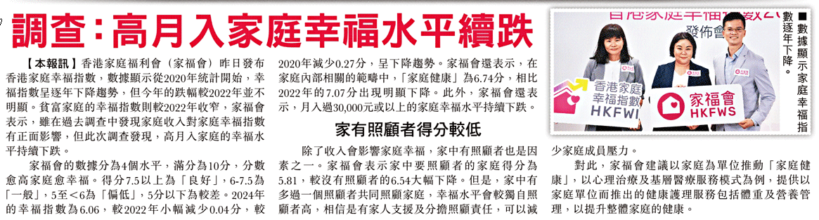 香港家庭幸福指數2024