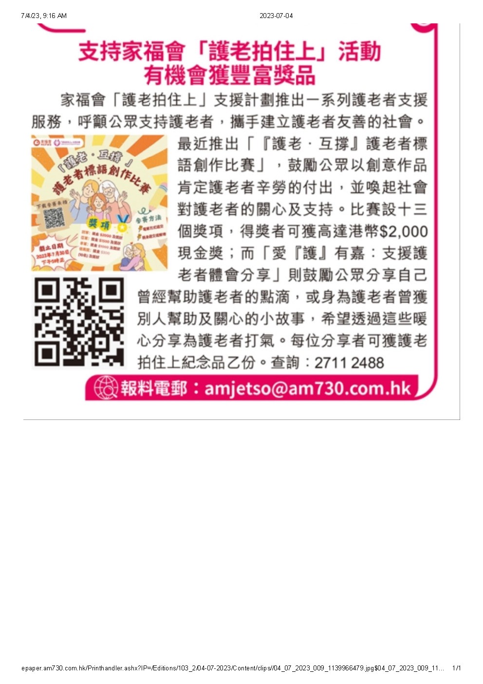 支持家福會「護老拍住上」活動 有機會獲豐富獎品