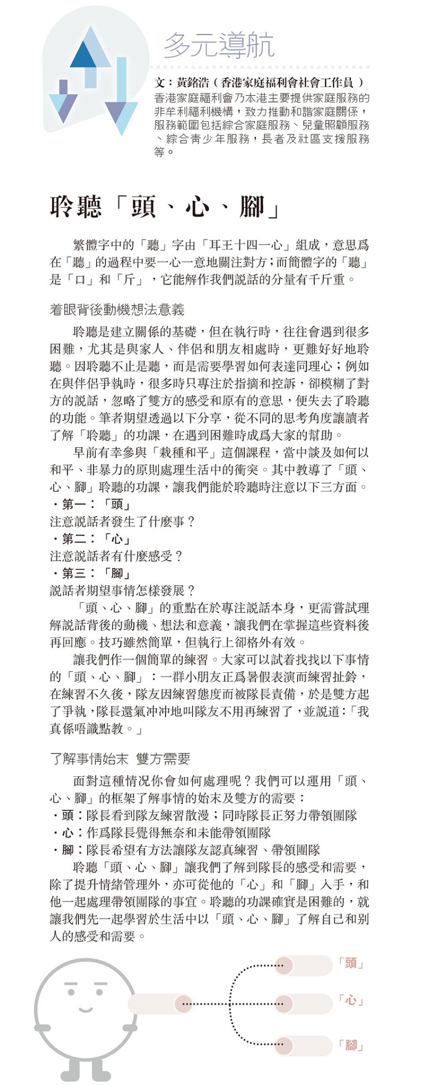 多元導航:聆聽「頭、心、腳」