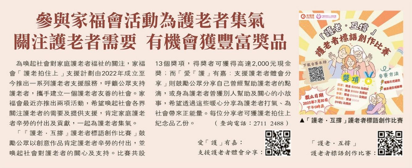 參與家福會活動為護老者集氣 關注護老者需要 有機會獲豐富獎品