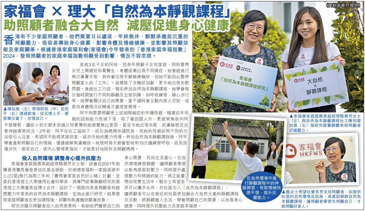 家福會X理大「自然為本靜觀課程」 助照顧者融合大自然 減壓促進身心健康