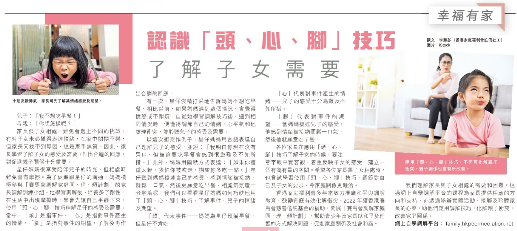 幸福有家:認識「頭、心、腳」技巧 了解子女需要