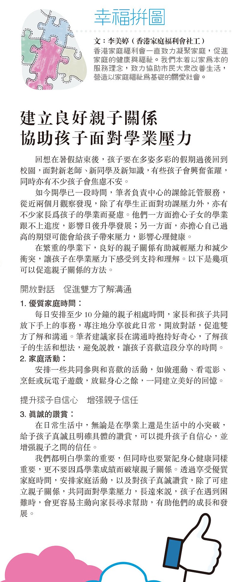 幸福拼圖:建立良好親子關係 協助孩子面對學業壓力