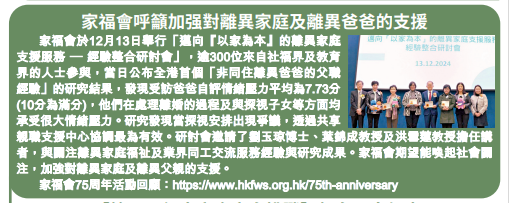 家福會呼籲加强對離異家庭及離異爸爸的支援