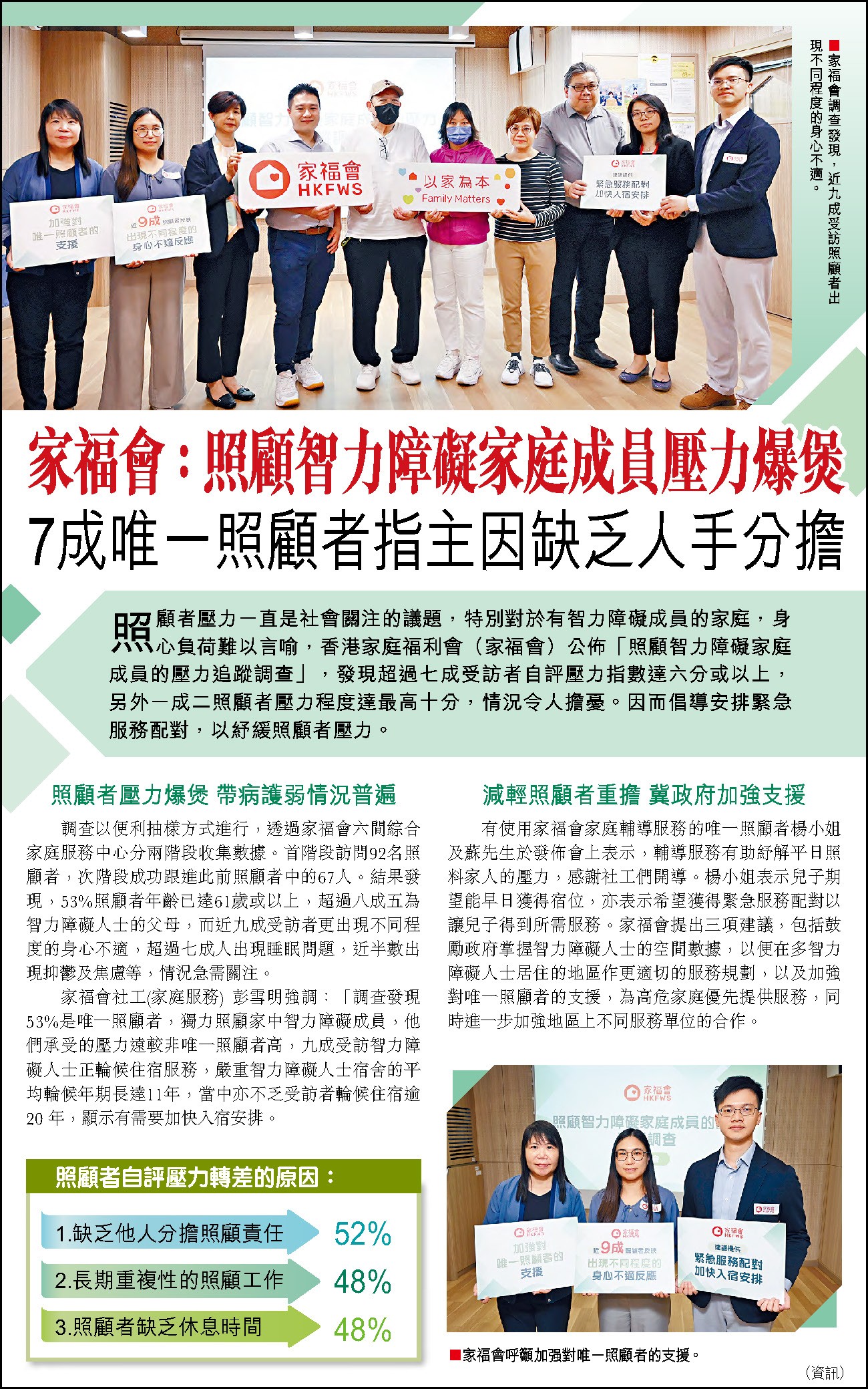 家福會:照顧智力障礙家庭成員壓力爆煲