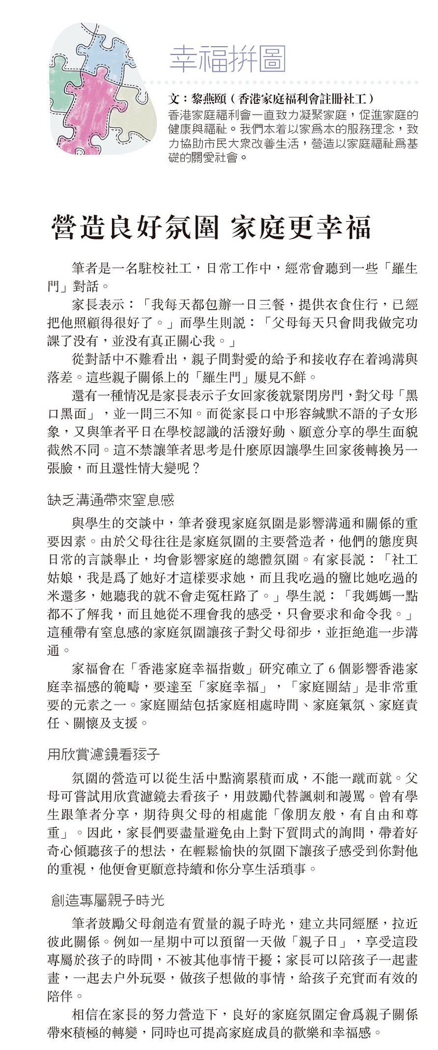 幸福拼圖:營造良好氛圍 家庭更幸福