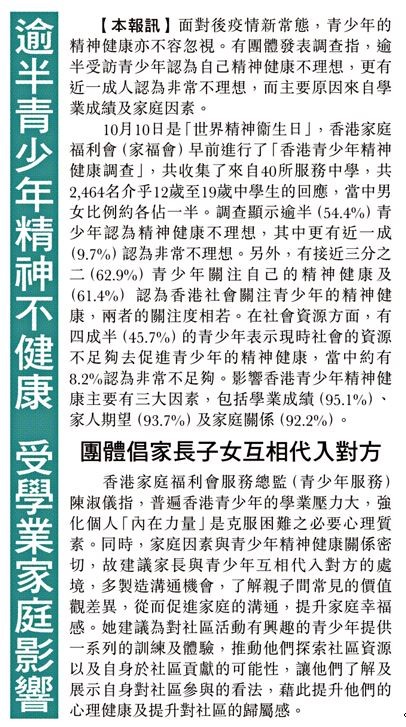 逾半青少年精神不健康 受學業家庭影響