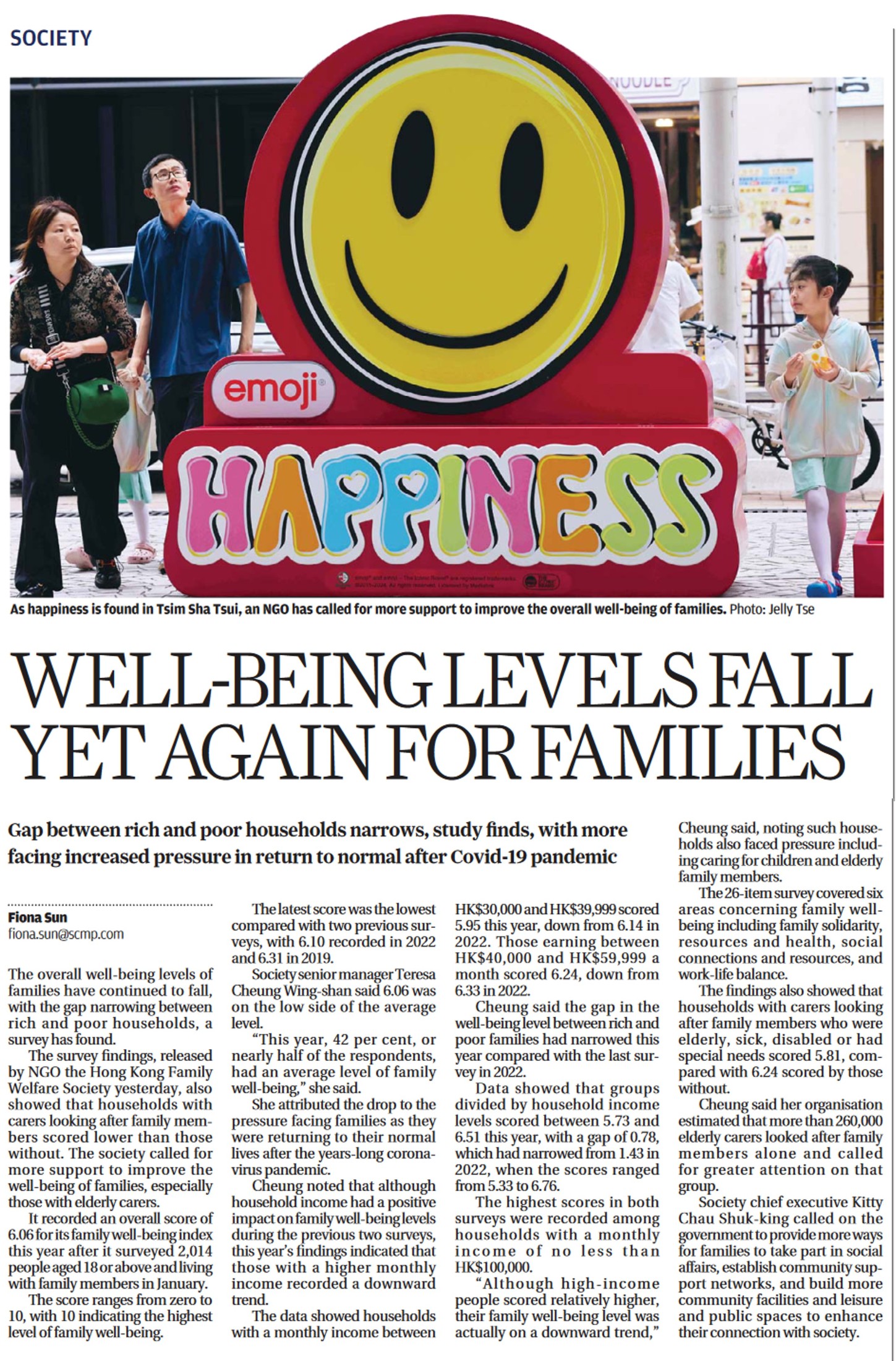 Hong Kong families’ well-being levels fall, with gap between rich and poor narrowing, survey finds