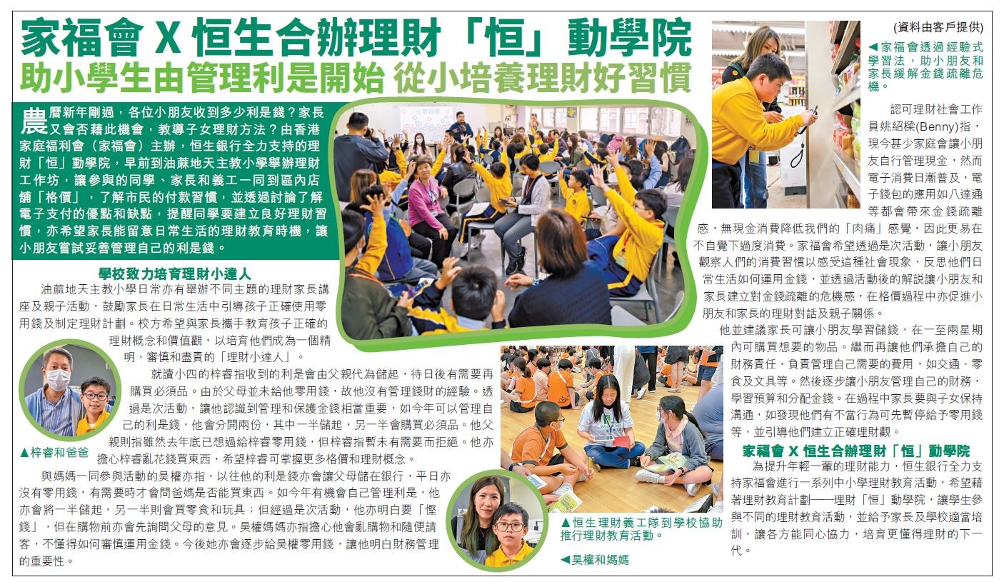 家福會X恒生合辦理財「恒」動學院 助小學生由管理利是開始 從小培養理財好習慣
