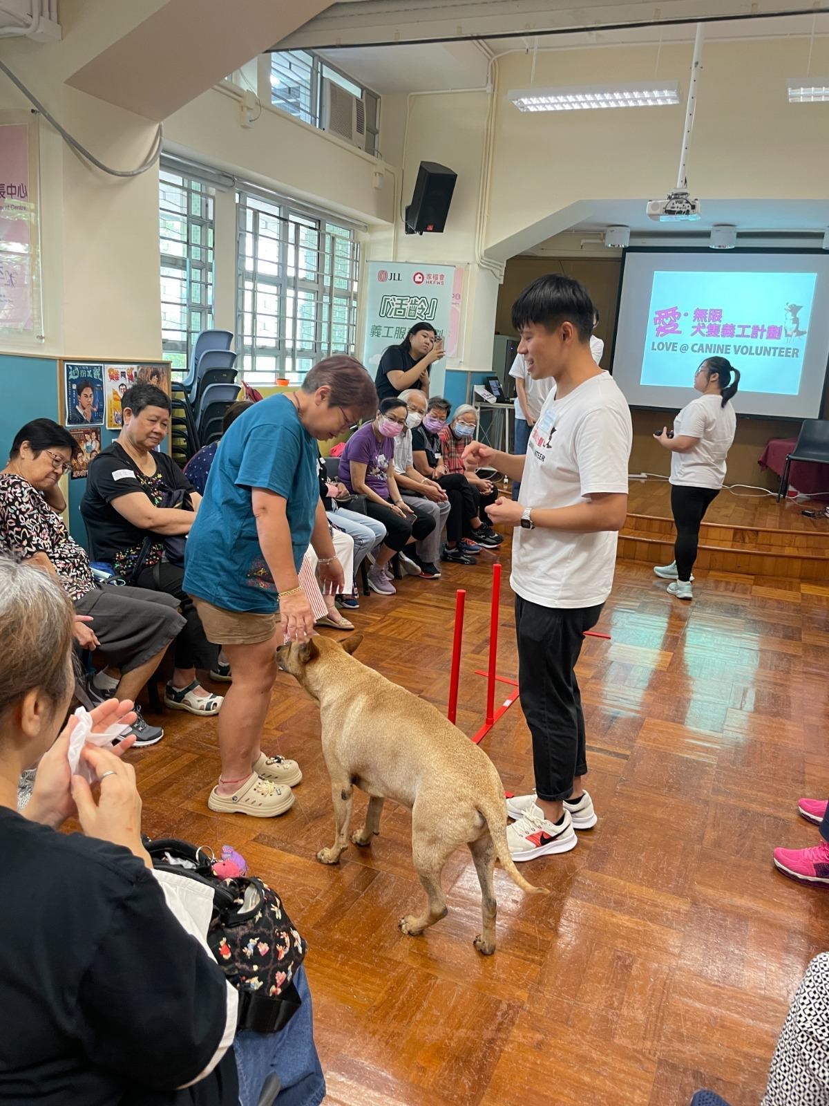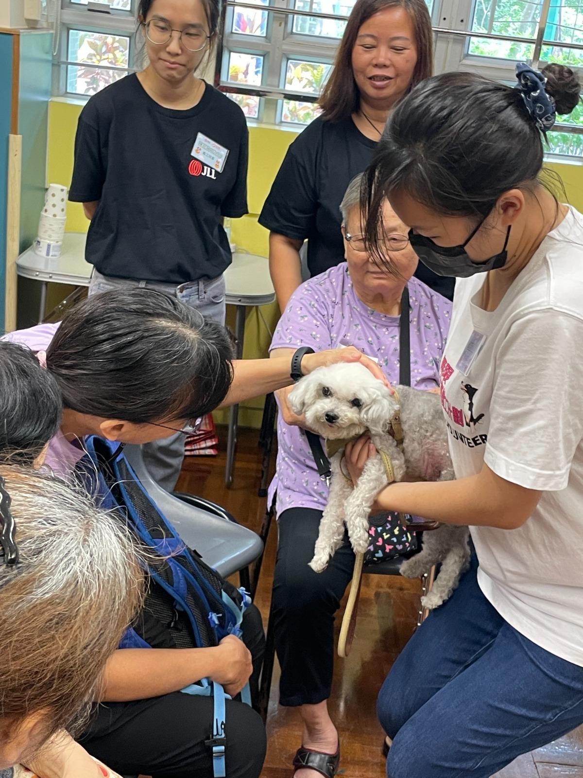 有見於年長的護老者承受沉重的照顧壓力,本月9日本會與一班仲量聯行義工,以及循道衛理楊震社會服務處「愛•無限犬隻義工計劃」義工團隊,到本會轄下的婦女及家庭成長中心,舉辦「咖」家有愛——護老者及長者放鬆冰室活動,由義工們即席沖泡咖啡及製作小食、聆聽長者及護老者的心事,席間長者亦了解到如何正確地領犬、接觸狗隻和餵食牠們,參加者藉著與寵物玩樂得到心靈上的療癒,輕鬆享用咖啡,度過了一個紓壓愜意的下午。