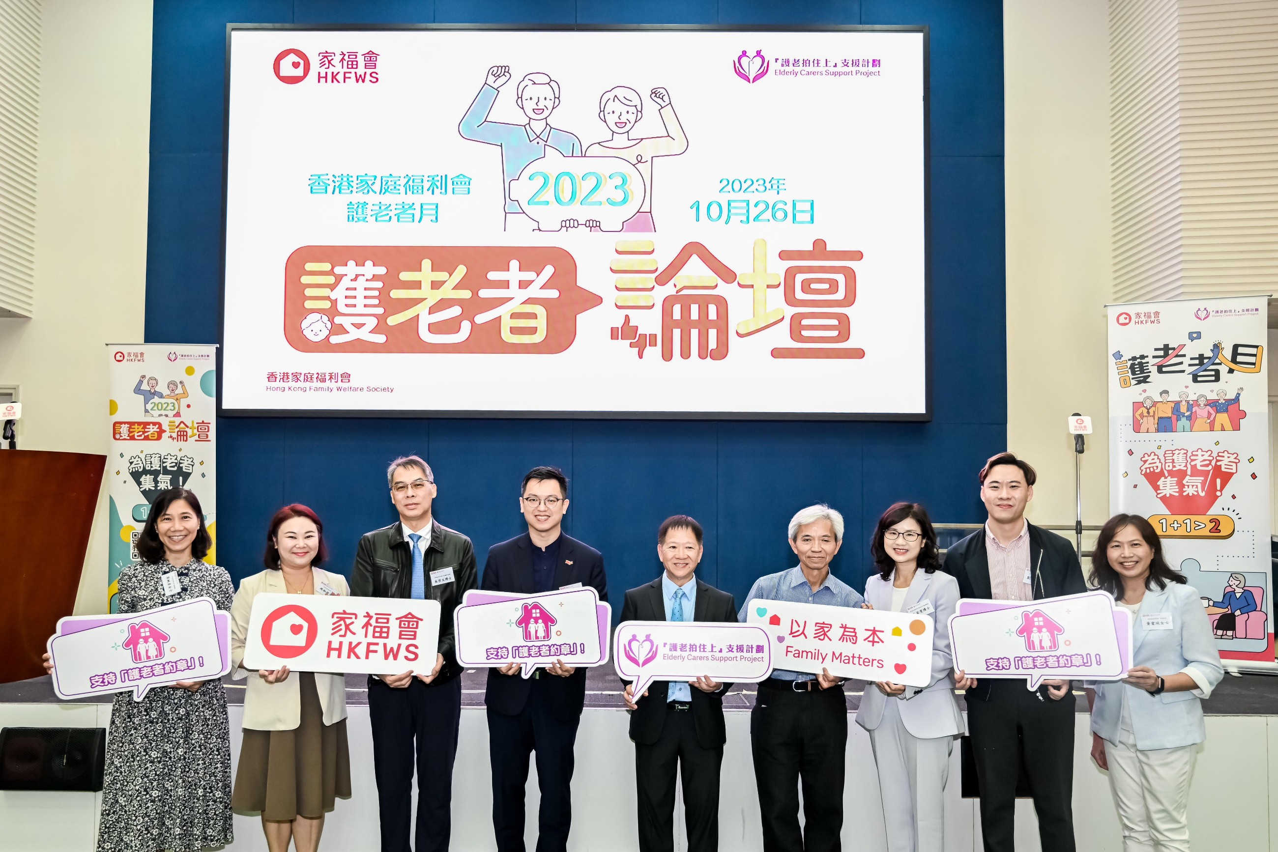 家福會於今日(2023年10月26日)舉辦「護老者論壇2023」,邀請不同界別人士與公眾交流,除了專題分享,各界代表更參與公開討論及問答,與公眾一同探討如何促進護老者的社區支援。勞工及福利局副局長何啟明先生JP表示面對人口高齡化,政府推出多元化安老服務,包括進一步改善長者照顧服務,期望減輕護老者的照顧壓力。平等機會委員會行政總監(營運)朱崇文博士認為工作與家庭責任不應放於對立面,承認照顧者的崗位和確立他們的權利,能有效提升他們的地位和能力,並重申僱主應遵守 《家庭崗位歧視條例》 ,以及落實家庭友善僱傭措施。而富安集團企業持續發展總監劉駿楷先生則以該集團的護老者友善政策為例子,分享相關措施對公司利益的正面影響,並鼓勵其他企業推出僱主僱員「雙贏」的護老者支援措施。香港房屋協會社區及長者服務總監吳家雯博士強調建立鄰里互助網絡對於護老者日常照顧非常有幫助,呼籲大眾積極關心身邊的護老者。何啟明先生JP、朱崇文博士及後亦與社會福利界立法會議員狄志遠博士S.B.S, B.B.S, JP、香港社會服務聯會總主任(家庭及社區)陳曉園女士以及香港家庭福利會長者服務委員會委員馬錦華先生JP 一同參與公開討論及問答環節。