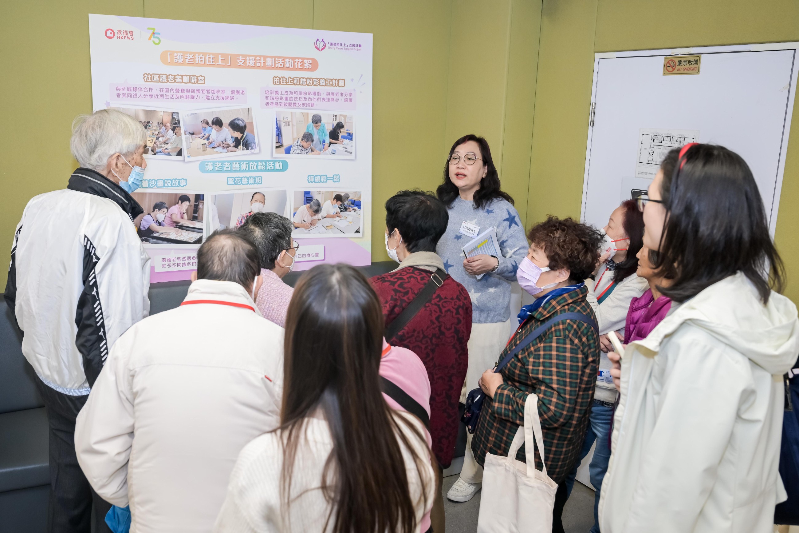 家福會一直致力於長者服務,定期舉辦護老者的社區支援服務,包括關懷探訪、暫托、陪診服務、協助購物等,又會舉辦藝術工作坊及參觀活動,讓護老者有喘息空間。「護老拍住上」一系列護老者支援服務自2022年起推行,透過舉行「護老者月」、各護老及社區論壇等,協力喚起社區對護老者的關注。更多資訊請瀏覽:https://carer-support.hkfws.org.hk/。